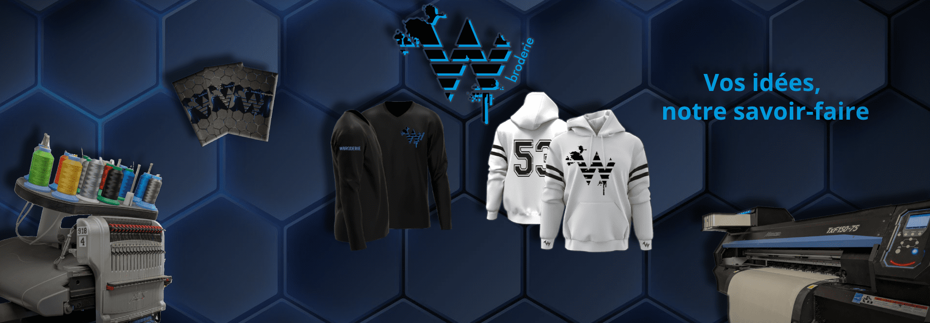 W Broderie, établie depuis 2007, offre un service personnalisé en broderie, DTF, sublimation, articles promotionnels, trophées et médailles. Chez nous, chaque client est accueilli comme un membre de la famille.