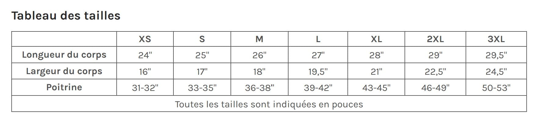 | GRANDEURS | Femme (Small), Femme (Medium), Femme (Large), Femme (X-Large), Femme (2X-Large), Femme (3X-Large) |