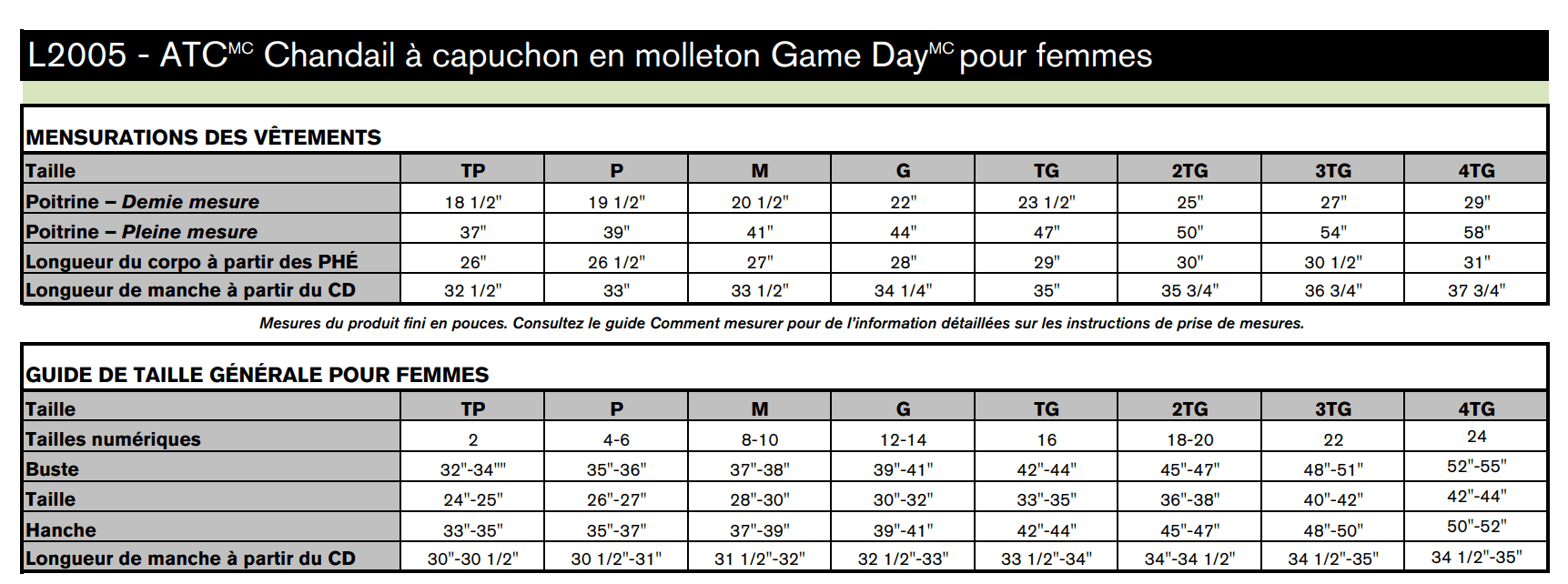 | GRANDEURS | Femme (X-Small), Femme (Small), Femme (Medium), Femme (Large), Femme (X-Large), Femme (2X-Large), Femme (3X-Large), Femme (4X-Large) |