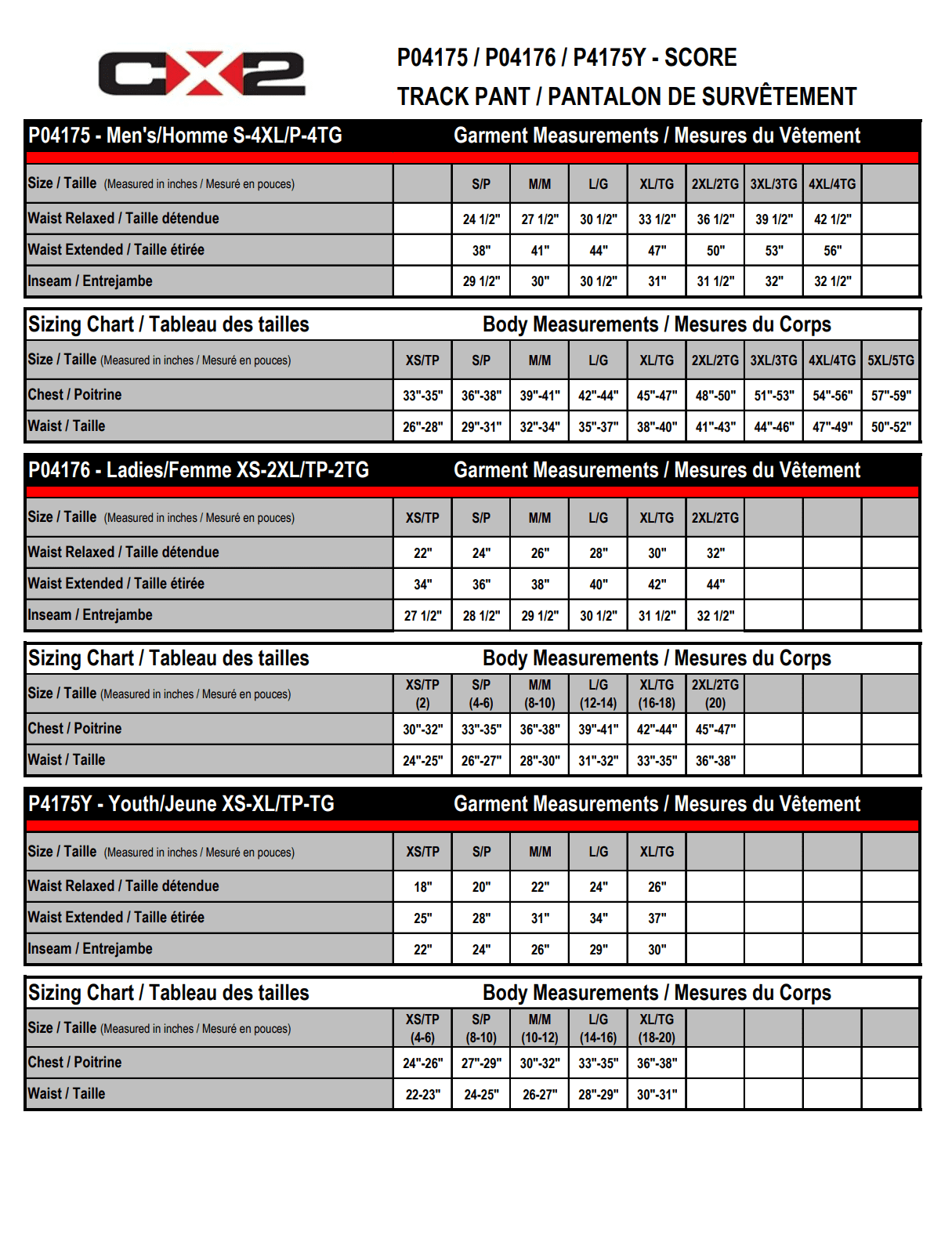 | GRANDEURS | X-Small Enfant, Small Enfant, Medium Enfant, Large Enfant, X-Large Enfant, Femme (X-Small), Femme (Small), Femme (Medium), Femme (Large), Femme (X-Large), Femme (2X-Large), Homme (X-Small), Homme (Small), Homme (Medium), Homme (Large), Homme (X-Large), Homme (2X-Large), Homme (3X-Large), Homme (4X-Large) |
