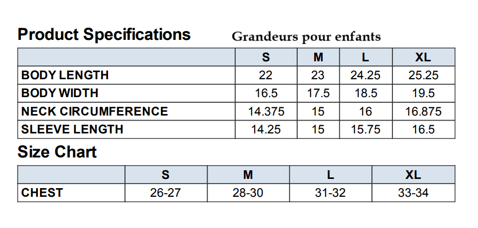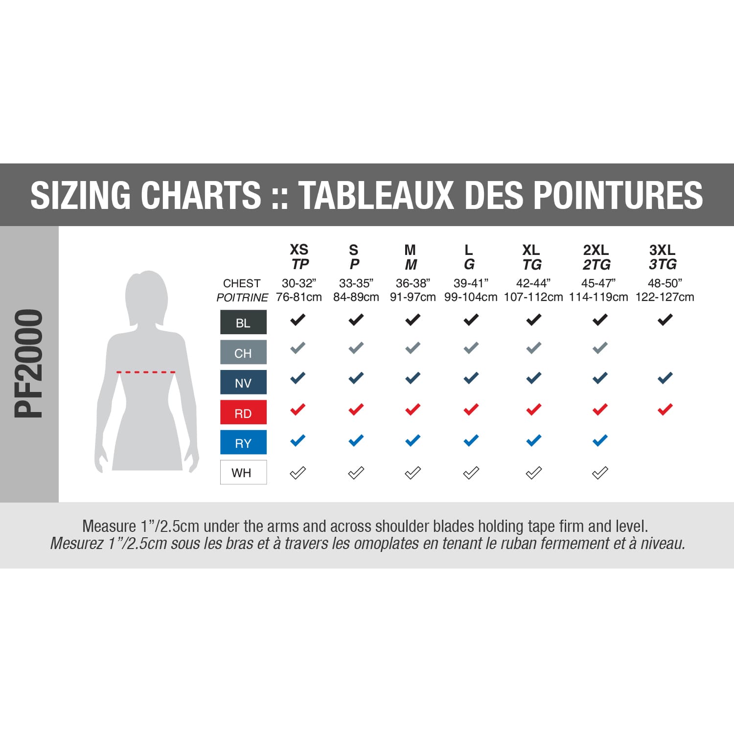 Femme (X-Small), Femme (Small), Femme (Medium), Femme (Large), Femme (X-Large), Femme (2X-Large), Femme (3X-Large), Small Enfant, Medium Enfant, Large Enfant, X-Large Enfant, Homme (Small), Homme (Medium), Homme (Large), Homme (X-Large), Homme (2X-Large), Homme (3X-Large), Homme (4X-Large), Homme (5X-Large)