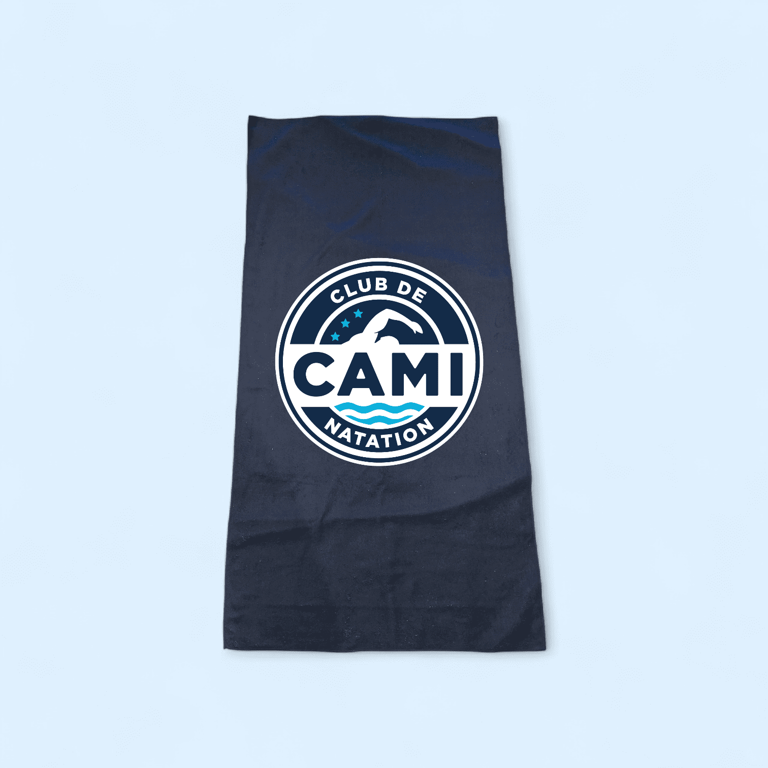 SERVIETTE DE PLAGE EN MICROFIBRE 100% PERSONNSALISÉE AVEC LOGO CAMI NATATION