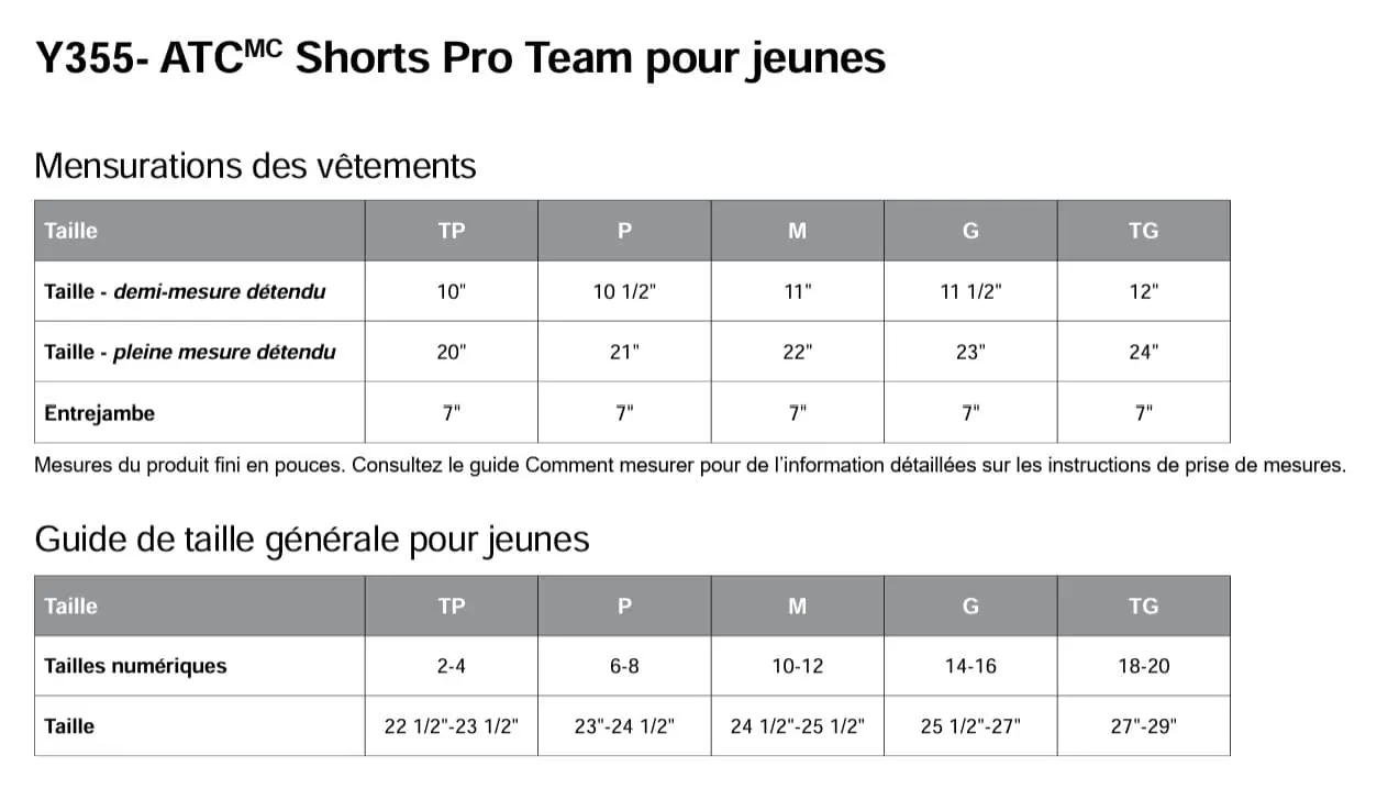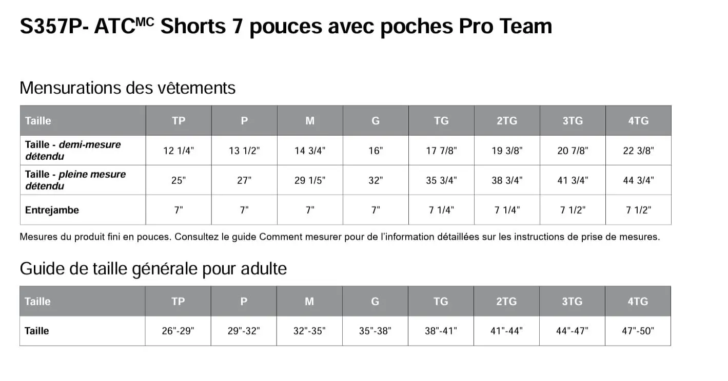 | GRANDEURS | X-Small Enfant, Small Enfant, Medium Enfant, Large Enfant, X-Large Enfant, Homme (X-Small), Homme (Small), Homme (Medium), Homme (Large), Homme (X-Large), Homme (2X-Large), Homme (3X-Large), Homme (4X-Large) |