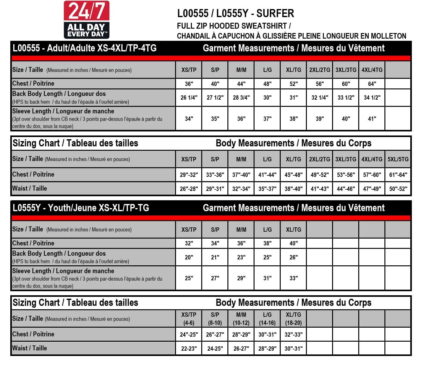VESTE À ZIPPER UNISEXE POUR ADULTE ET ENFANT (L00555 / L0555Y) INCLUANT SOIT LE LOGO KL AVANT CÔTÉ DROIT OU LOGO KL À LA VERTICAL AU DEVANT AINSI QUE LE LOGO GROS DOS